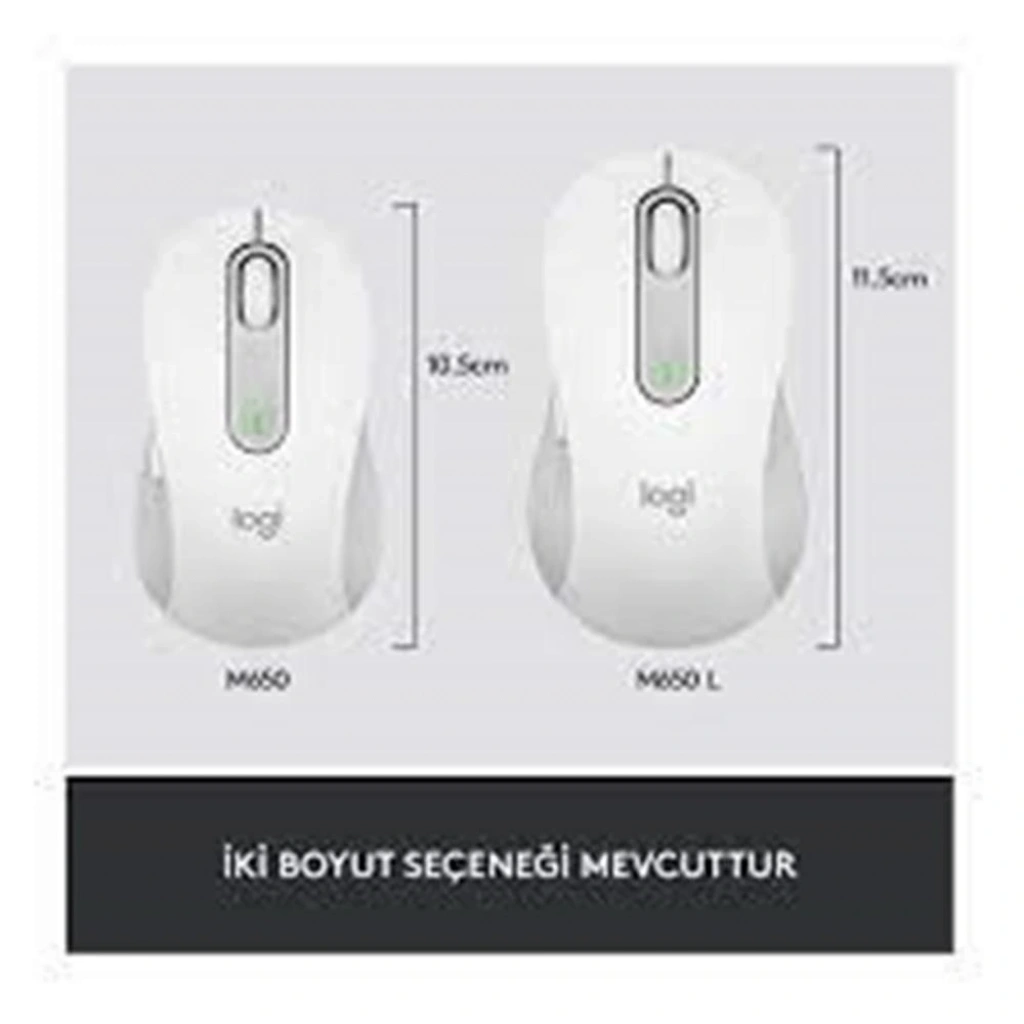Logitech 910-006238 M650 L Signature Kablosuz Beyaz El Tam Boyutlu Mouse