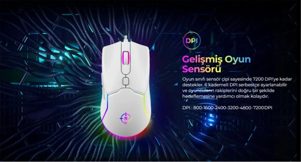 North Air White RGB Kablolu Profesyonel Oyuncu Mouse