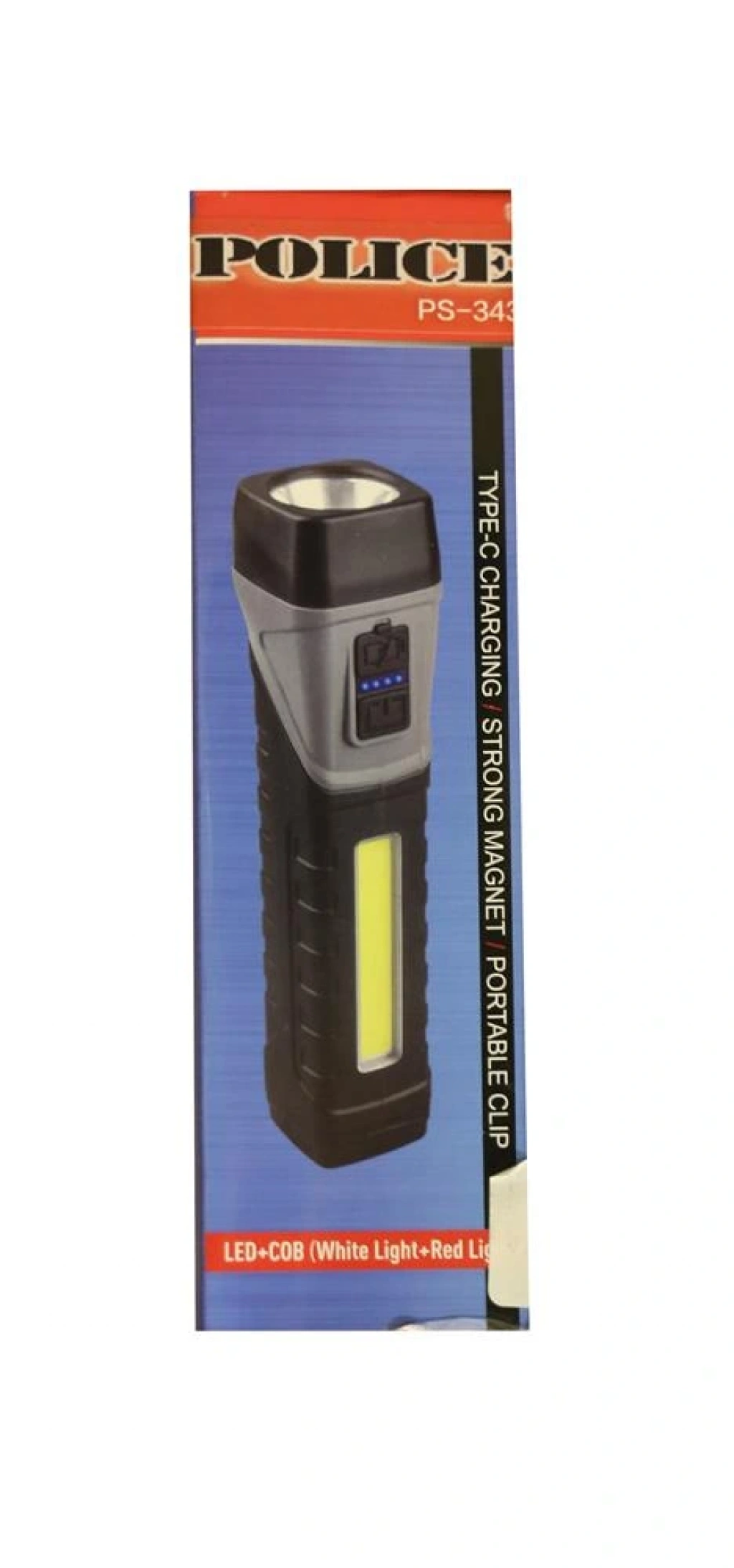 Polıce PS-343 Magnetli, 90 Derece Oynar Başlık, Kırmızı İkaz Işıklı Şarjlı El Feneri